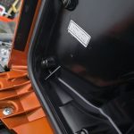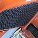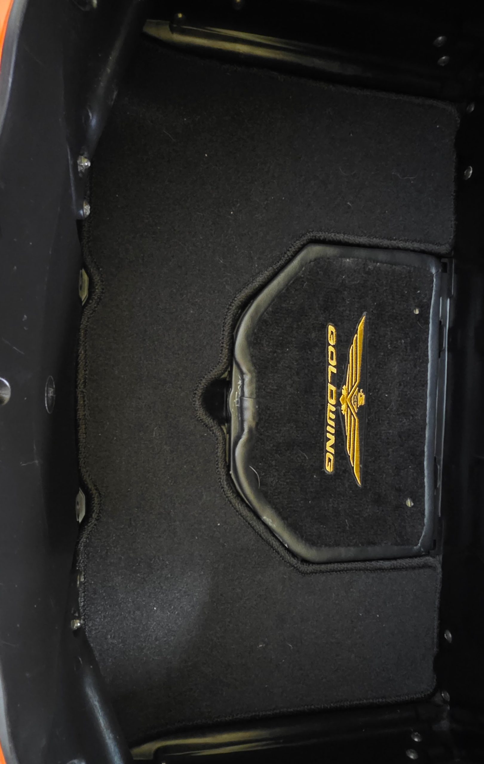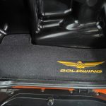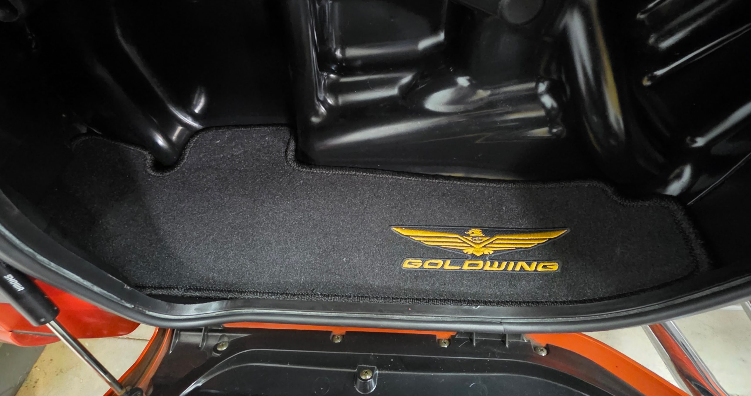 A carpet set finishes off the trunk and saddlebags. These are hard to come by for such an old bike. I finally found a set at Wingstuff. The only catch: this is the set designed for the optional CD player. When that’s installed, the lid that covers the sub-trunk is larger. We cut down the center mat insert and had a local upholstery shop bind the edges.