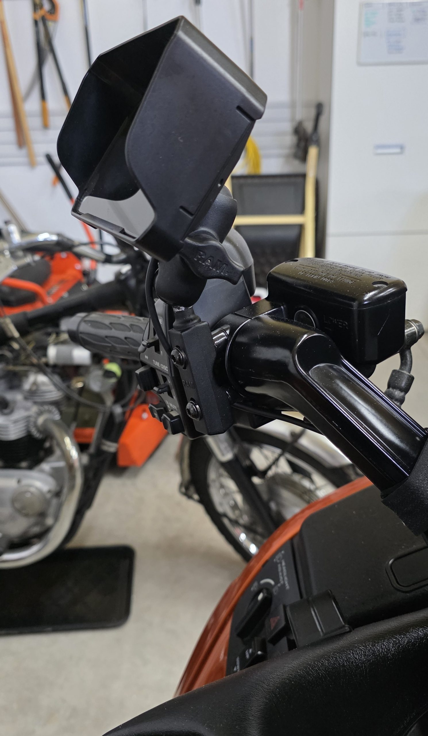 In any case, I’m very happy with the solution and wouldn’t hesitate to recommend it. For now I’ve mounted it on the left handlebar with a typical RAM ball setup. In the future I may try to mount it on a RAM ball just below the ignition switch.