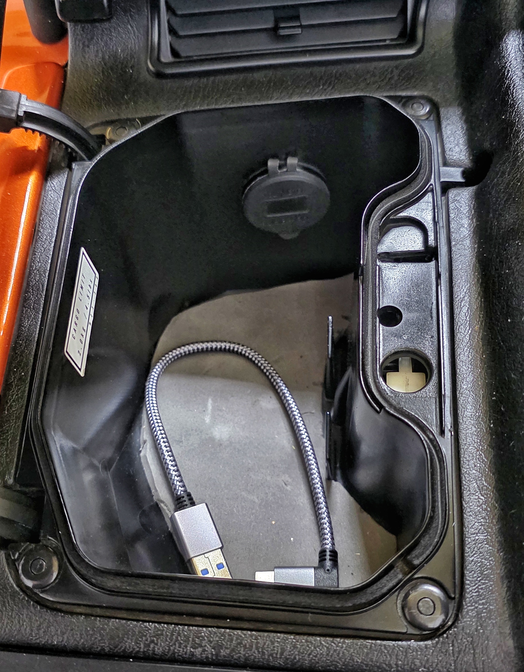 Finally, since we can be on the bike most of the day while running Android Auto/Google maps/music, I needed a way to keep my phone charged. I installed a marine PD/QC 3.0 USB charger in the left glove box, connected to the switched power source that would have been used with the OEM cigarette lighter charge port.