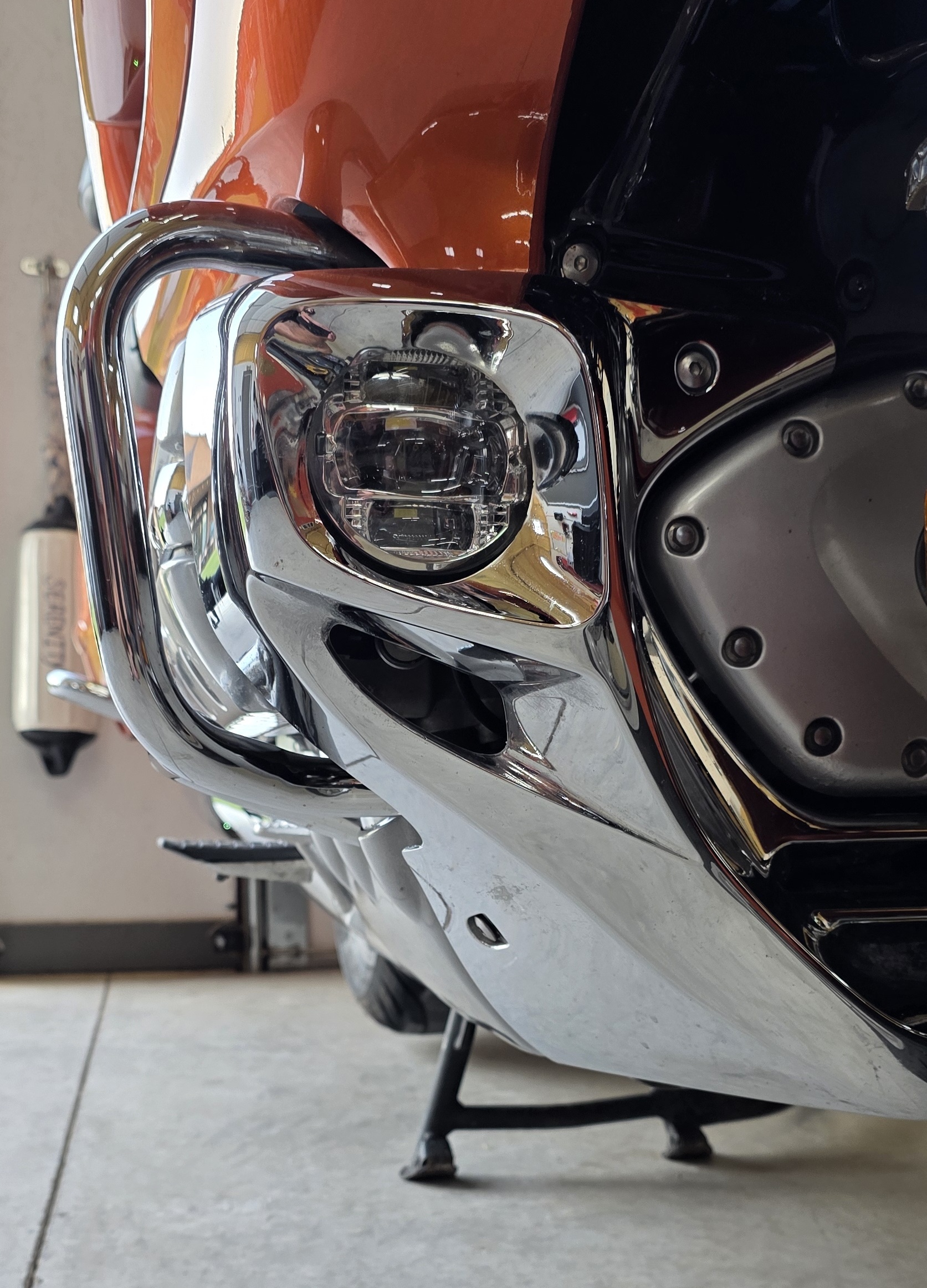 I’ve had at least four Garmin GPS devices over the years and have had a very love/hate relationship with them. For this bike I went with the ChiGee AIO-5 Apple Carplay/Android Auto display. They also make a 6″ display. The device has worked great. It’s very well made and never lost a connection with my phone during a 10 day trip. The screen is bright and easy to see in daylight. Like all such devices, you need a glove with a finger that works with a capacitive screen or you need to get good at using voice commands.