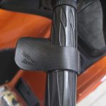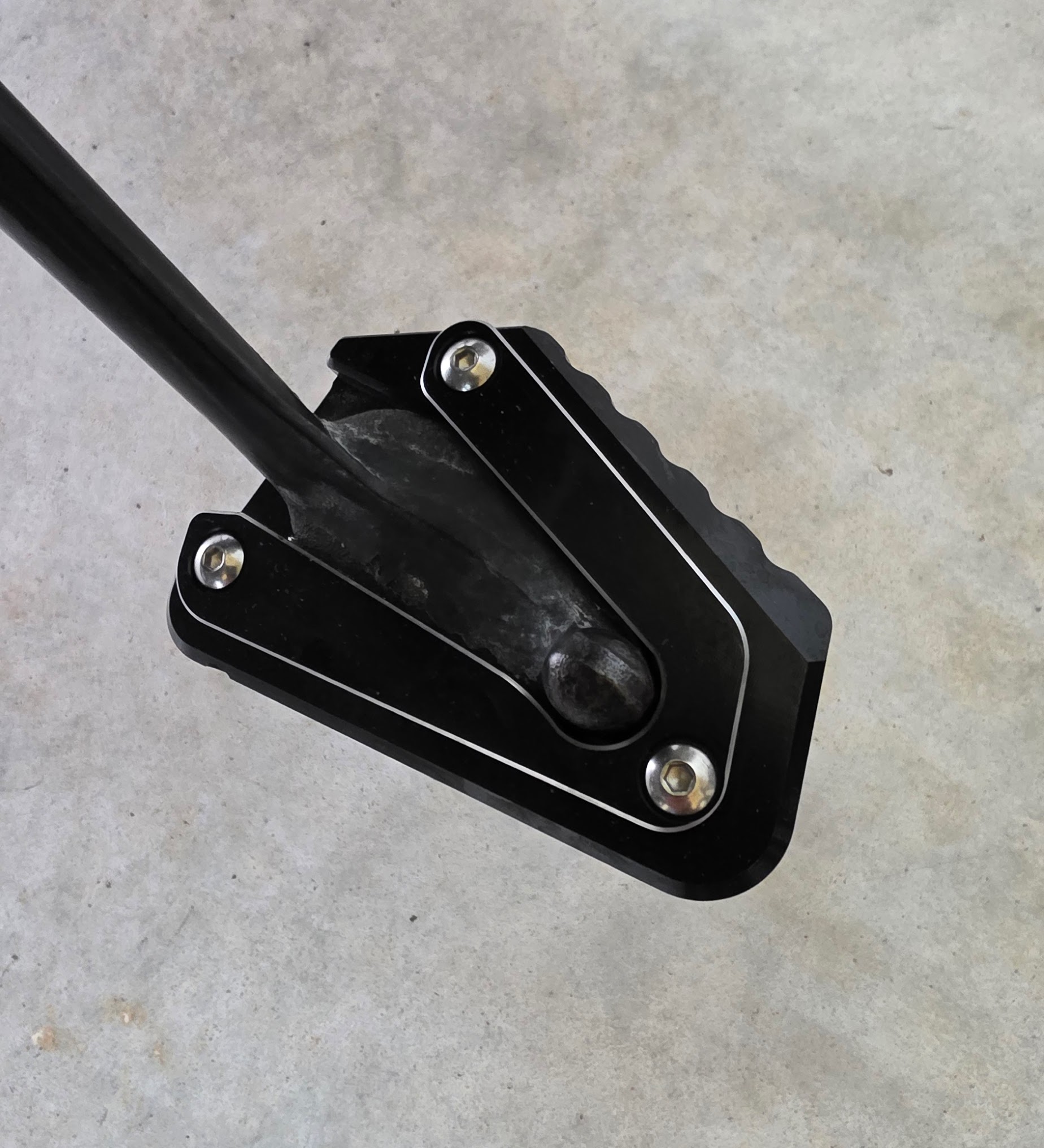 We added a larger foot pad for the side stand. This worked very well on our recent trip, adding much confidence when stopping on a dirt or gravel parking area.